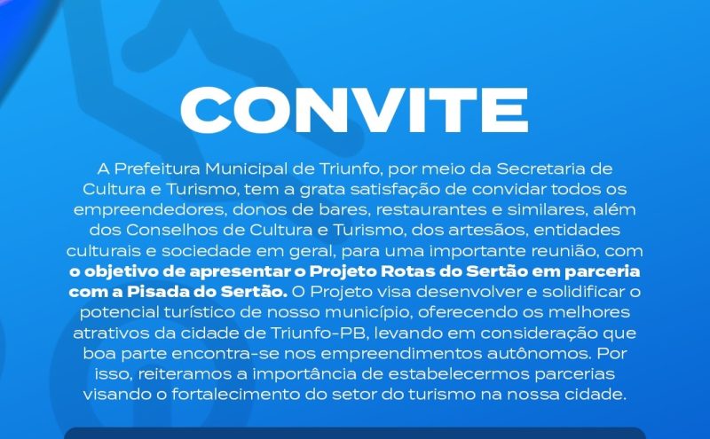 Prefeitura de Triunfo convida empreendedores e representantes da cultura para apresentação do Projeto Rotas do Sertão