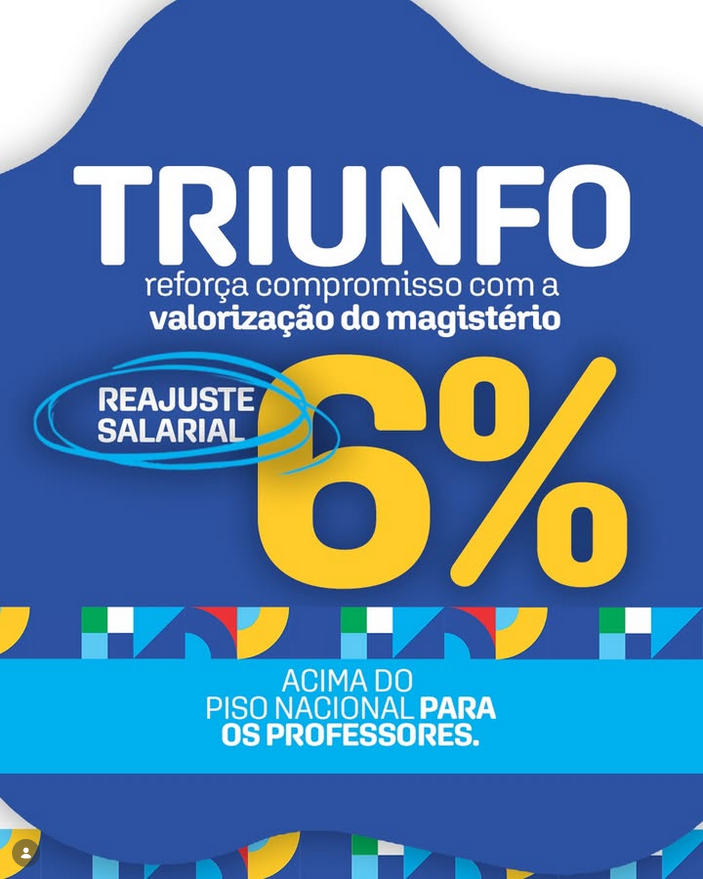 29 jan 2026 - NotíciasA Prefeitura de Triunfo confirmou um reajuste salarial de 6% para os professores da rede municipal de ensino, percentual que fica acima do piso nacional do magistério. A atualização passa a valer a partir deste ano e beneficia todos os profissionais da categoria no município.